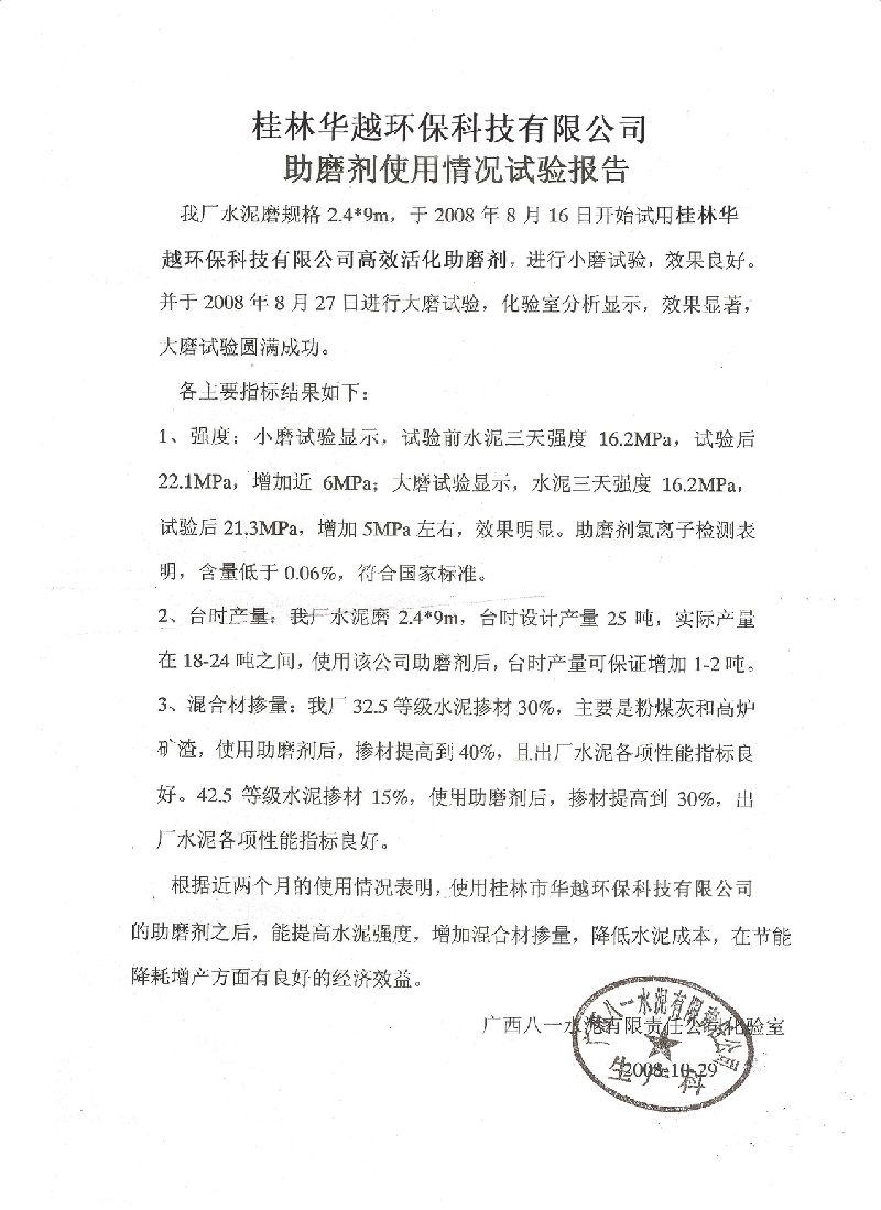 > 廣西八一水泥有限責任公司成功使用助磨劑案例